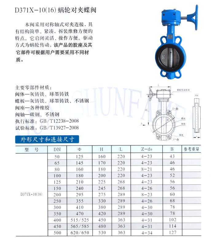 D371X-10(16)蝸輪對夾蝶閥